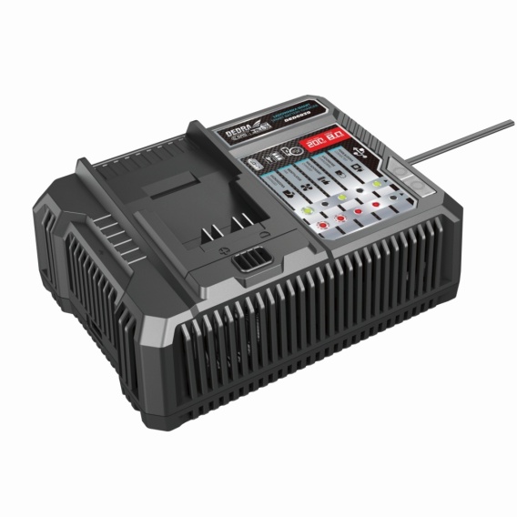 Szybka ładowarka DEDRA SAS+ALL DED6939 przeznaczona jest do super szybkiego ładowania akumulatorów z serii SAS+ALL (DED7032, DED7034, DED7035, DED6936, DED6937). Wyposażona w system diagnostyczny oraz wentylator chłodzący akumulator podczas pracy, co zabezpiecza ogniwa przed przegrzaniem. Dodatkowe gniazdo USB (5V/2A) umożliwia równoczesne ładowanie urządzeń mobilnych – funkcja USB działa niezależnie od procesu ładowania akumulatora.