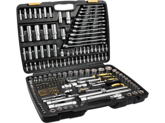 Zestaw zawiera pełen zakres nasadek krótkich i długich 1/4", 3/8" i 1/2", przedłużki, przeguby Cardana, bity, adaptery i wiele innych elementów, które sprawdzą się zarówno przy drobnych pracach montażowych, jak i bardziej wymagających naprawach mechanicznych. To idealne rozwiązanie dla osób poszukujących jednego, uniwersalnego kompletu narzędzi.